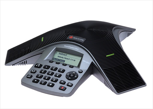 The Polycom SoundStation Duo dual-mode analog/IP conference phone provides exceptional deployment flexibility and best-in-class investment protection. Designed for small to midsize rooms, SoundStation Duo is easy to set up and use. And, it delivers Polycom’s legendary audio performance. In VoIP environments, the SoundStation Duo conference phone delivers the most robust, standards-based interoperability in the industry.