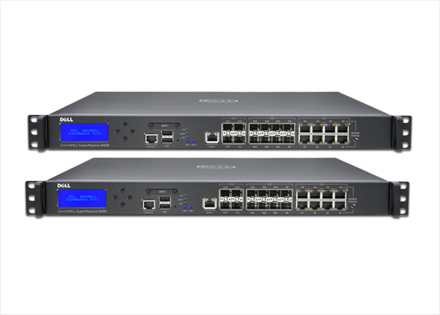 The Dell™ SonicWALL™ SuperMassive™ 9000 Series features 4 x 10-GbE SFP+, 8 x 1-GbE SFP, 8 x 1-GbE and a 1 GbE management interface for flexible deployments. The design provides near-linear performance increases to deliver up to 20 Gbps of firewall throughput, 9.7 Gbps of intrusion prevention with application control, and 5.0 Gbps of malware protection. Comprised of the 9200, 9400 and 9600, the SuperMassive 9000 Series provides options for enterprise networks of any size.
